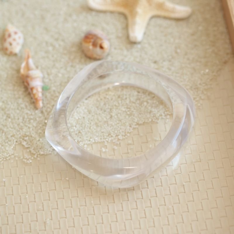 Bracelete com acabamento polido em resina transparente, perfeito para quem ama peças modernas, elegantes e versáteis. Seu design robusto valoriza o pulso e combina tanto com looks casuais quanto com produções mais refinadas.