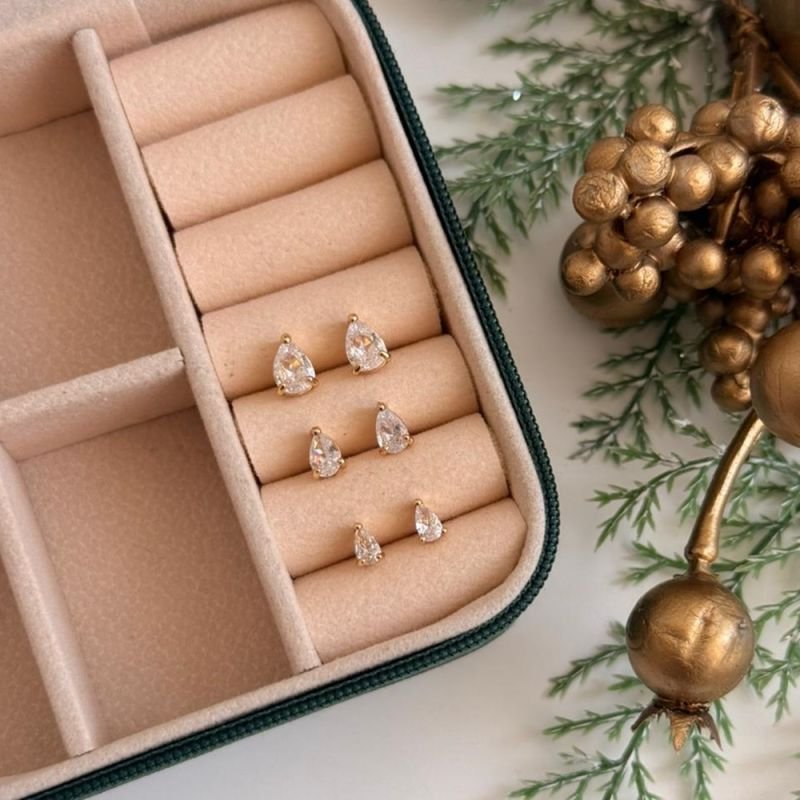 Brinco em formato de gota com fenda e três garrinhas. Um brinco delicado, a escolha perfeita para montar um mix de brincos, colares e pulseiras. Tamanho M.