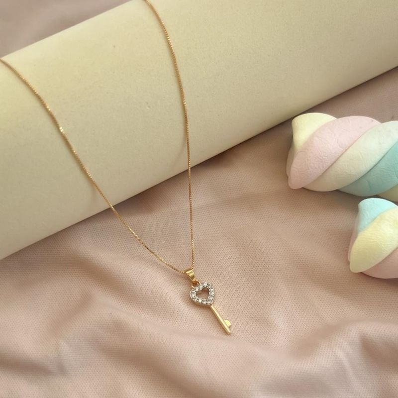 Colar corrente elinhos de ouro com pingente de chave cravejada em zircônia. Uma peça super moderna e delicada, perfeita para dá um charme ao seu look.