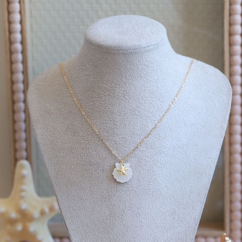 Delicado e cheio de charme, esse colar traz uma corrente de elinhos com pingente em formato de concha em madrepérola acompanhado de uma estrela-do-mar dourada que remete ao frescor e á leveza do verão. Uma peça leve, versátil e atemporal. Perfeita para compor looks praianos.