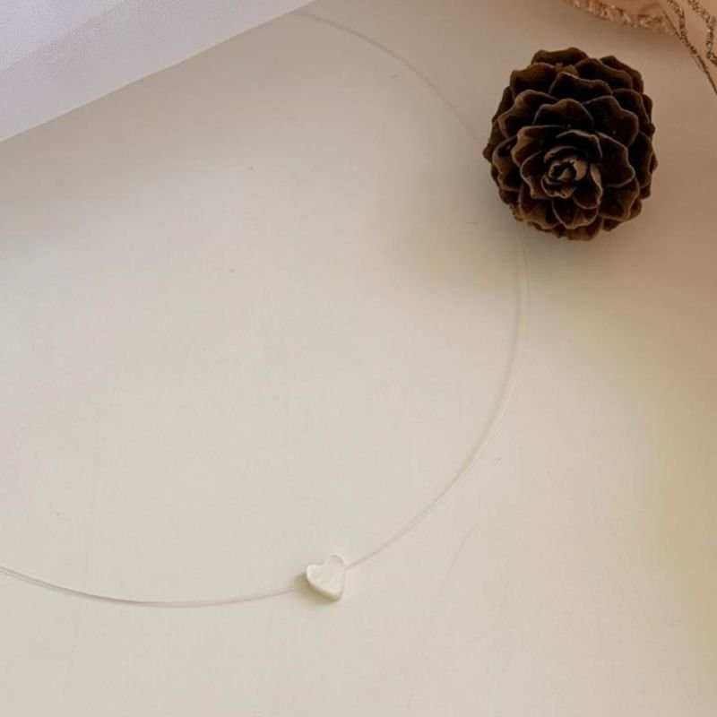 Colar fio de Nylon com pingente de coração madrepérola.. Perfeita para quem busca um acessório minimalista, sofisticado e atemporal e um design delicado.