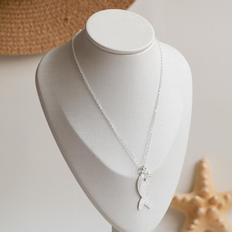 Elegante e cheio de personalidade, este colar de elinhos se destaca pelo seu pingente de peixe que ilumina o visual e uma pérola que dá aquele charme. Um modelo feminino e atemporal, perfeito para quem ama joias com charme e sofisticação. Ideal para compor look de verão.