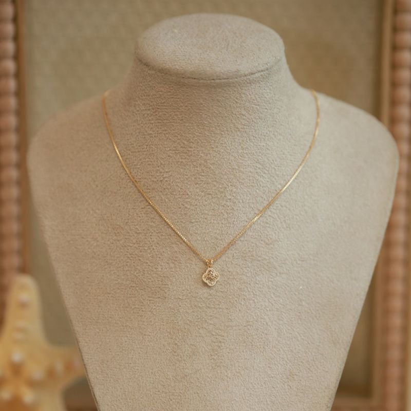 Delicado e cheio de significado, esse colar é a escolha perfeita para quem ama elegância com um toque moderno. A corrente veneziana valoriza o colo, enquanto o pingente em formato de trevo diamantado traz charme, sofisticação e simboliza sorte e boas energias.