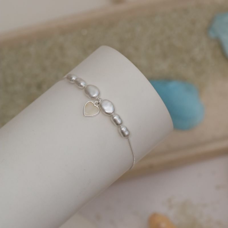 Delicada na medida certa e cheia de charme. Essa pulseira traz uma corrente veneziana, com pérolas barroca e um pingente de coração madrepérola, criando um visual elegante e moderno ao mesmo tempo.