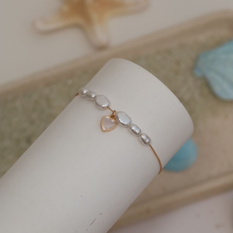 Delicada na medida certa e cheia de charme. Essa pulseira traz uma corrente veneziana, com pérolas barroca e um pingente de coração madrepérola, criando um visual elegante e moderno ao mesmo tempo.